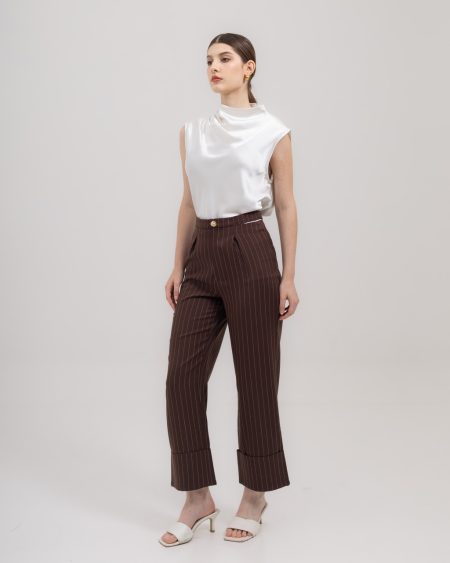Rp600.000A sculptural sleeveless top designed to elevate everyday dressing. Featuring soft wave flap detail along the neckline, this piece brings subtle movement and architectural interest to a clean, elongated silhouette. Cut with a relaxed yet structured fit, the top drapes effortlessly on the body while maintaining a polished appearance.